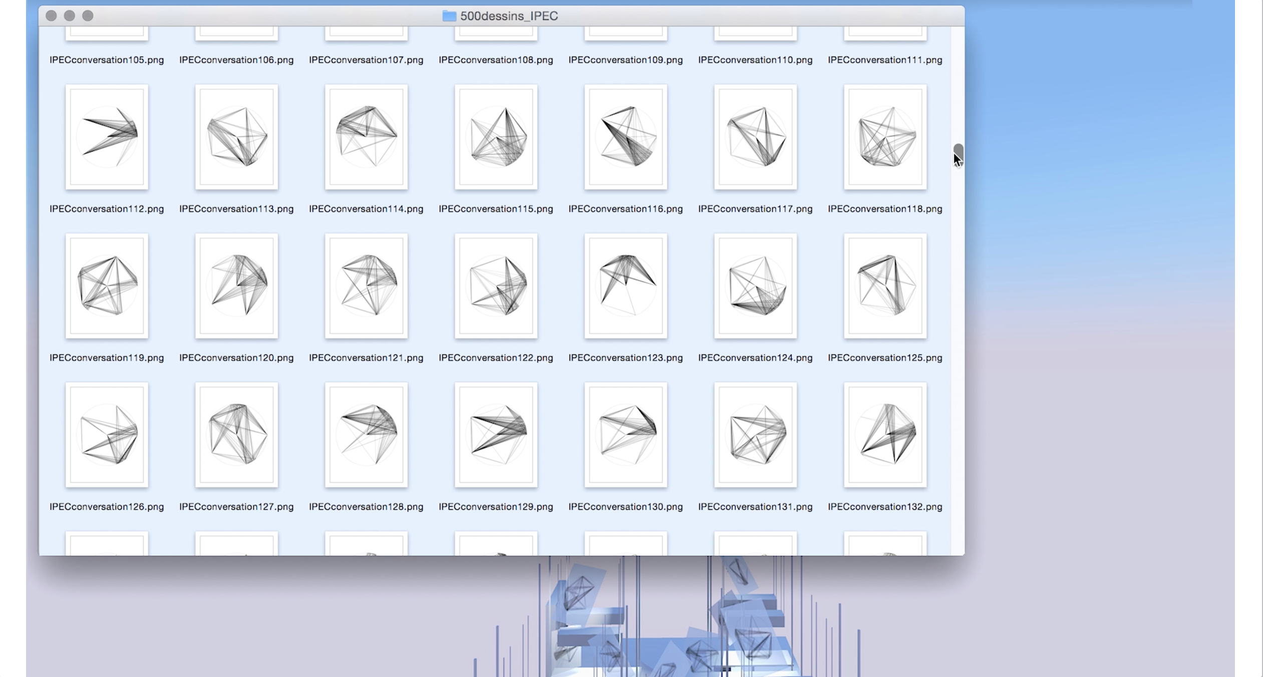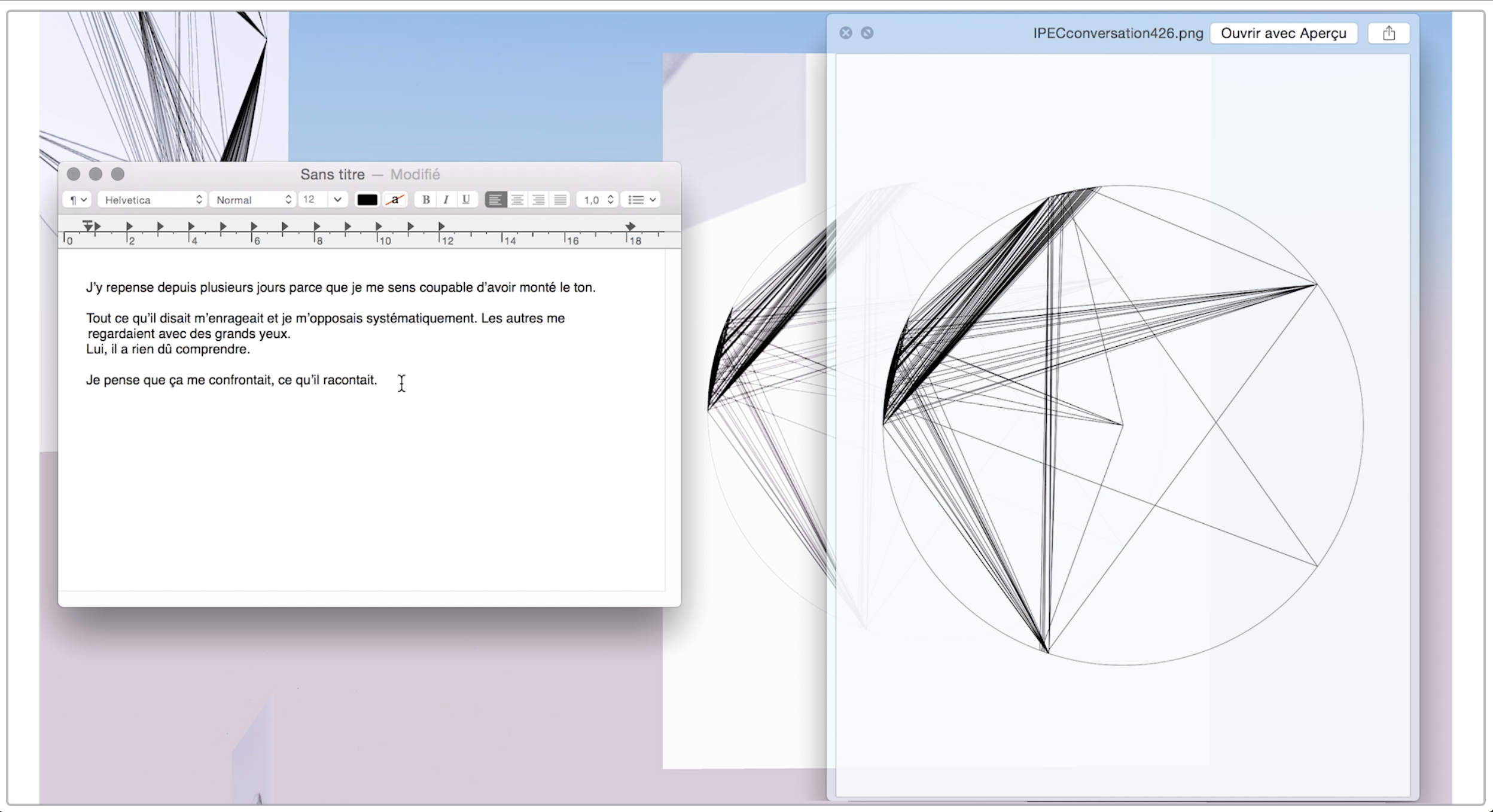 IPEC’s recent work is based on the development of protocols for representing group conversations, in order to carry out an extensive study of graphic compositions cataloguing all possible conversational structures.