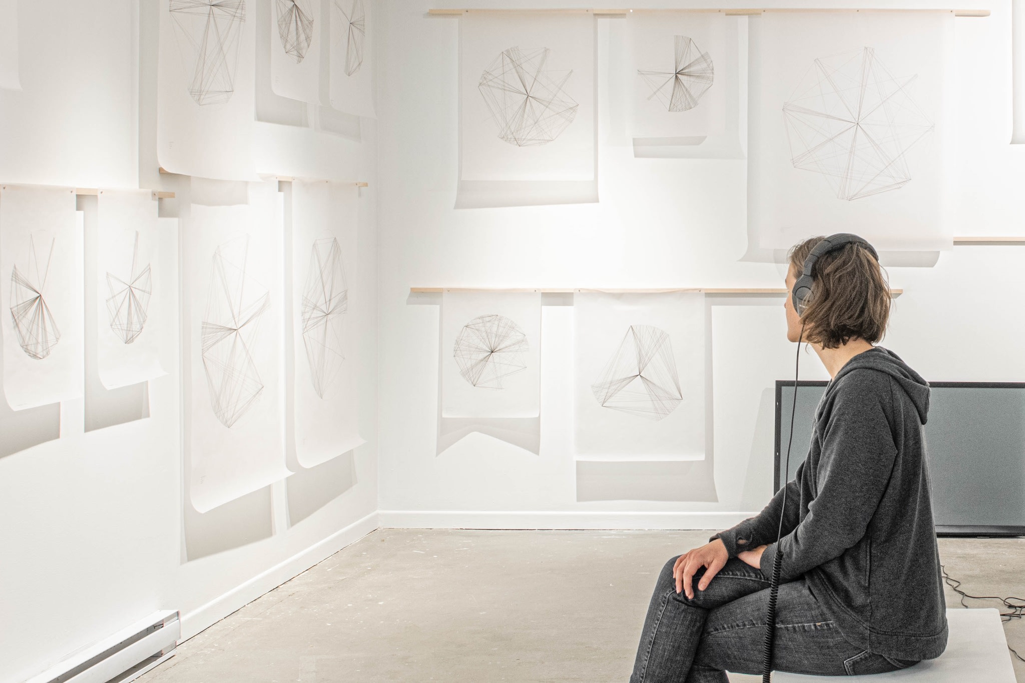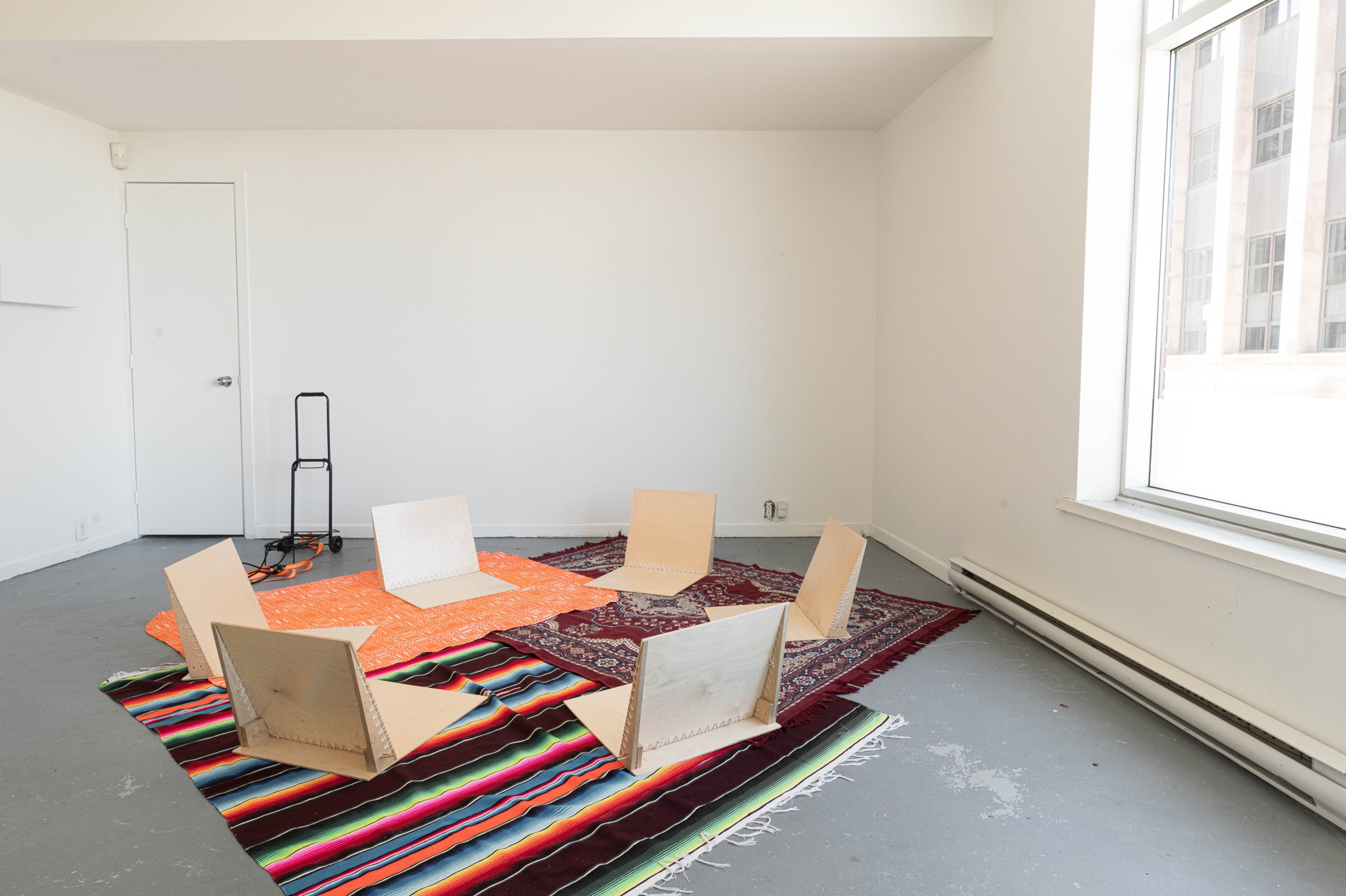 Russian birch, nylon thread, rugs. Dimensions variable.