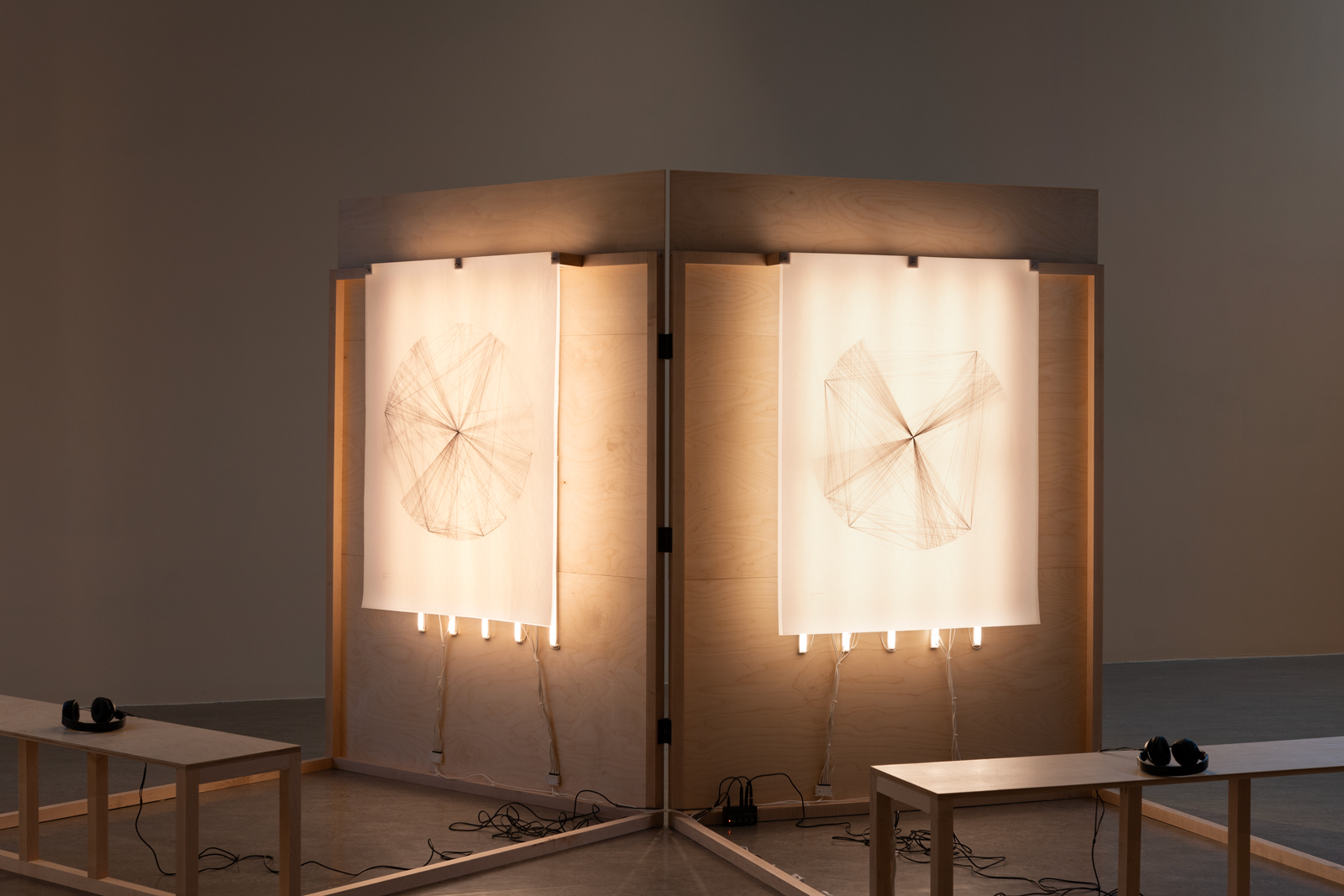 As visitors contemplate the structures of exchange traced on the translucent paper by the artist, they listen to the students' debates, stories and ideas. As one moves from one station to the next, they sense the different dynamics, rhythms, concerns and approaches of the different groups and therefore the different communities represented, but also the common claims and experiences that emerge and seem to transcend language barriers, borders and distance.