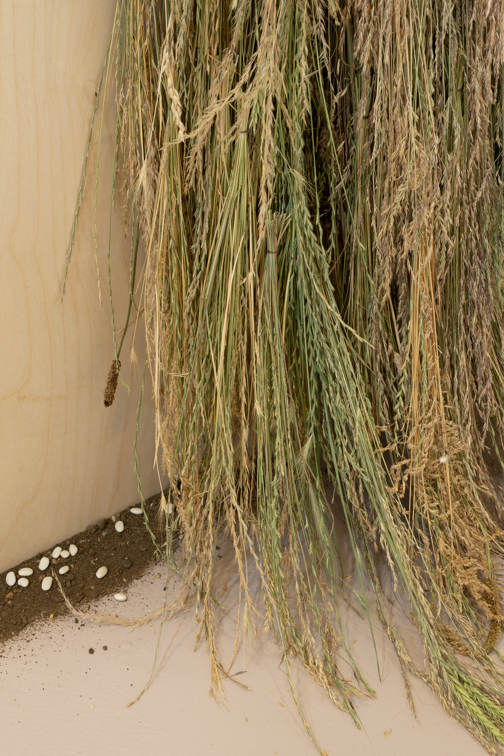 Cape. Argile crue, foin des champs, ruban, fil. 40cm x 25cm x 145cm